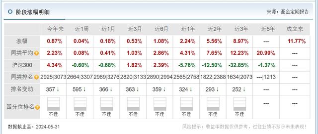 截至5月31日,东海祥泰三年定开基金各个阶段的收益在同类基金中排名都是“不佳”。