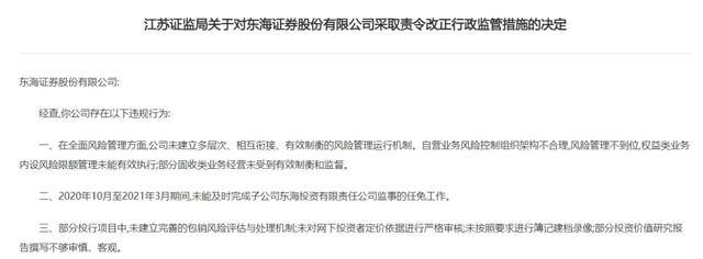 今年4月份,东海基金大股东东海证券因在全面风险管理方面存在问题,被江苏证监局采取责令改正的行政监管措施。