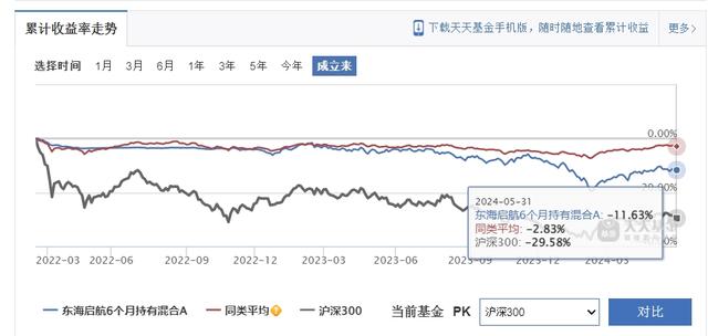 截至5月31日,东海启航6个月混合A类收益率约为-12%,远远跑输同类平均(-3%)。