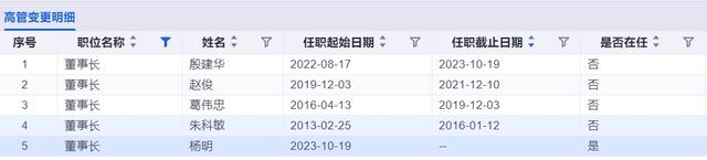杨明同时也是东海基金第五任董事长,从任职时间看,东海基金早年间是3年换一任,后变成2年换一任,而杨明上任时前任殷建华的任职时间仅1年多。