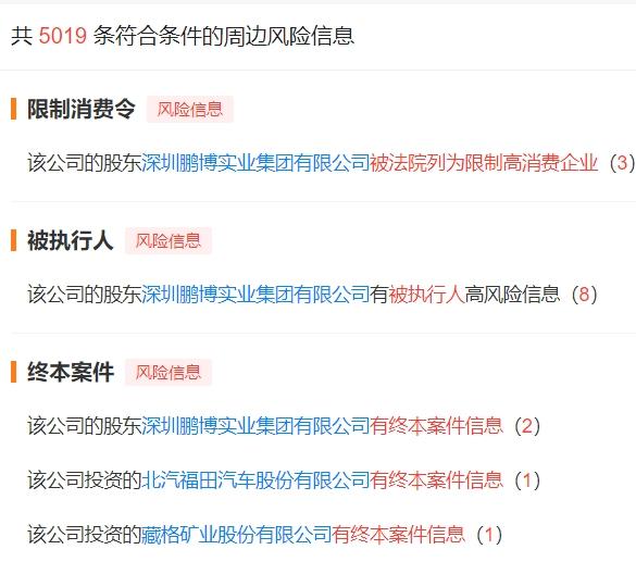 天眼查显示,东海基金周边风险超过5000条,涉及主体除了鹏博实业,还有东海基金及其投资的公司,涉及事项包含终本案件信息、部分股权处于出质状态、在其他企业持有的股权被冻结等。