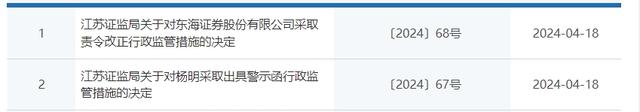 与此同时,东海证券执行委员会主任(总裁)杨明、投资经理林显锋皆被出具警示函。