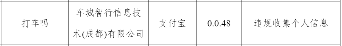 其中,打车吗0.0.48版本,涉及违规收集个人信息。