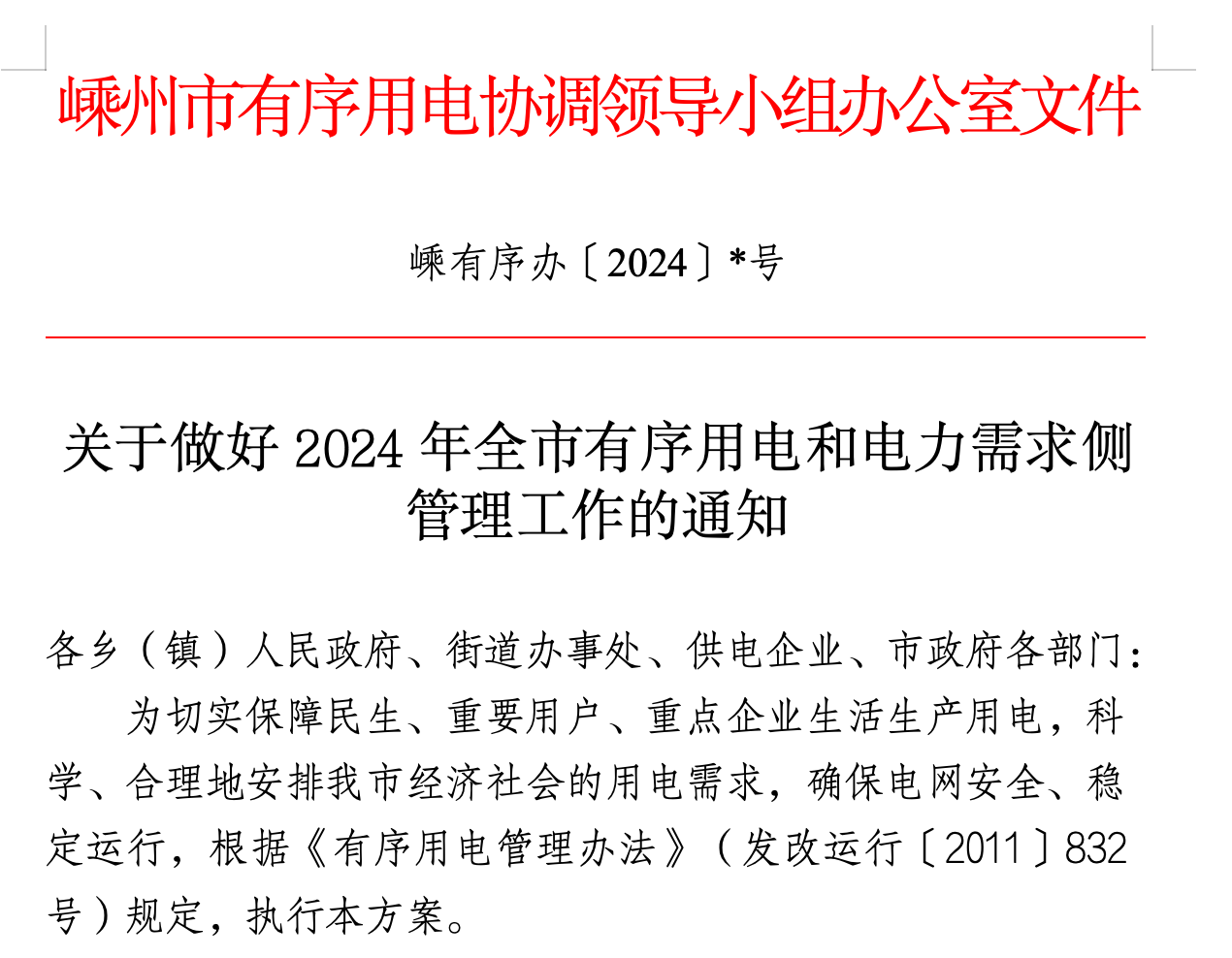 《关于做好2024年全市有序用电和电力需求侧管理工作的通知》部分截图
