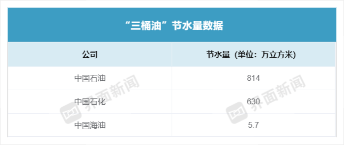 此外,三家公司对节水量也进行了披露。三家公司在节水量方面差距较大。其中,中国石化为630万立方米;中国海油最低,为5.7万立方米;中国石油节水量为814万立方米,节水量最高。