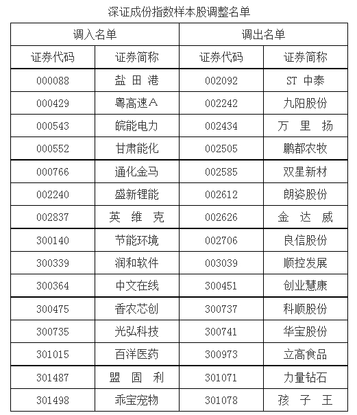 6月3日消息,深交所公告,根据指数编制规则,深圳证券交易所和深圳证券信息有限公司决定于6月17日对深证成指、创业板指、深证100等指数实施样本股定期调整。