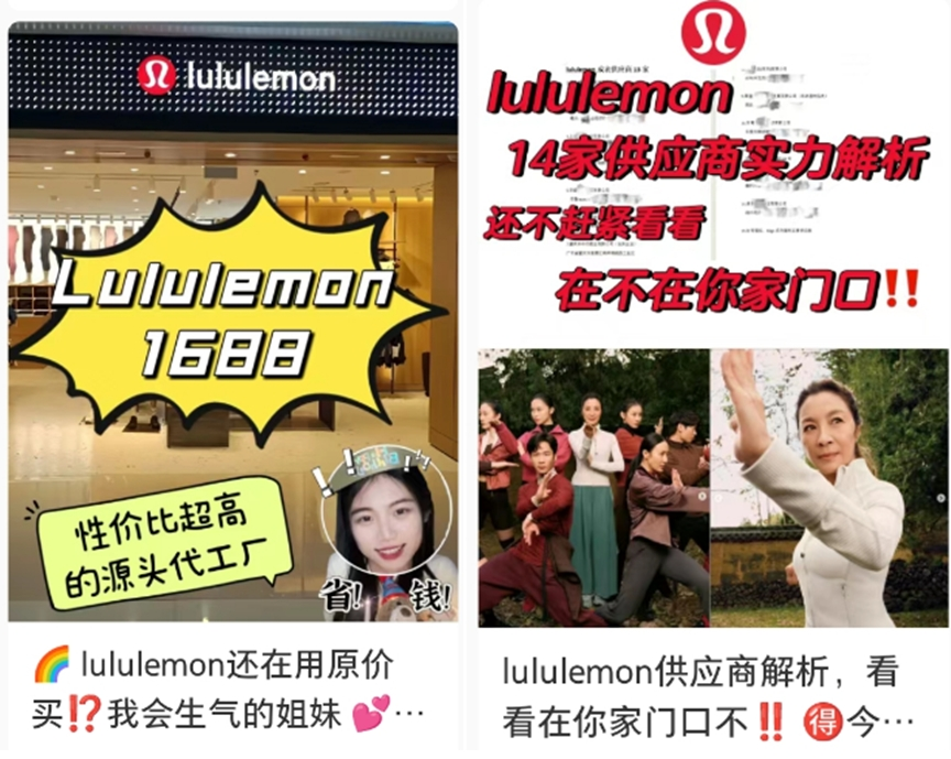短视频平台上充斥着大量lululemon“代工厂”的信息 图片来源:短视频平台截图