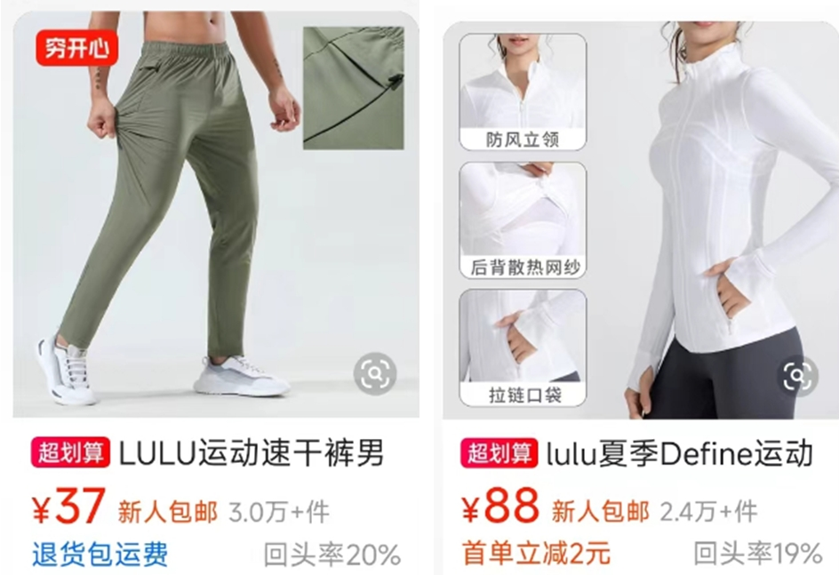 “你去购物平台上搜‘lululemon平替’,然后一买、一穿、一对比,就会发现,50块一件的平替,也和1000多元的原价正品一样好穿。”一位年轻的上海女白领告诉记者。