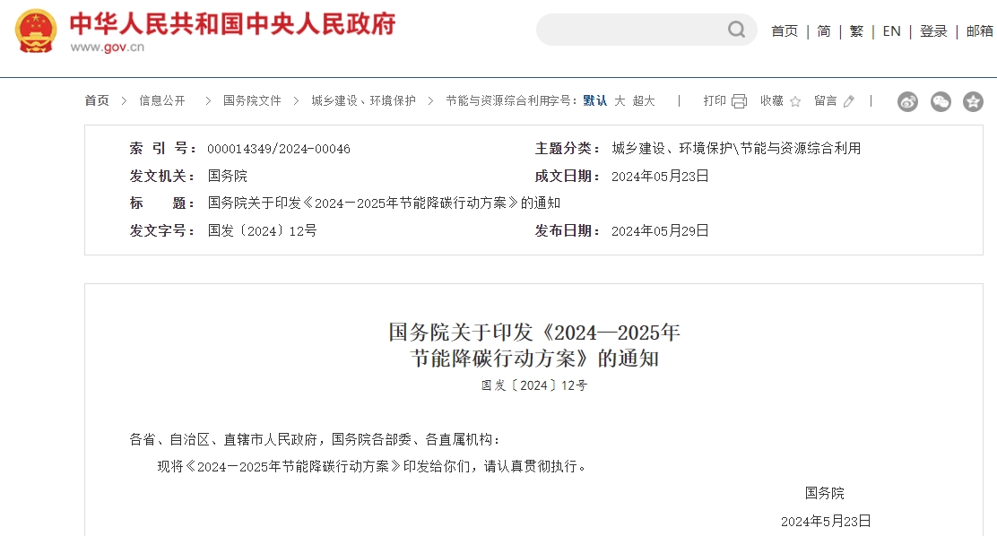 5月29日消息,国务院印发《2024—2025年节能降碳行动方案》。