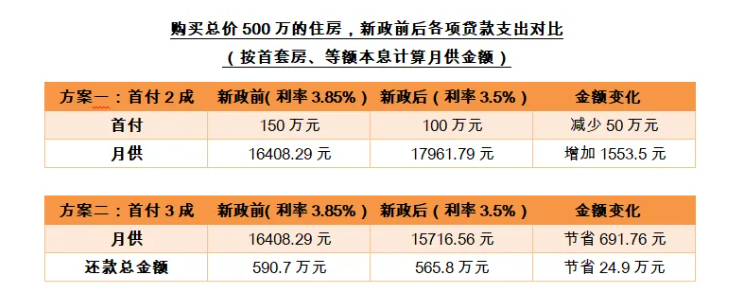 在采访过程中,何倩茹向记者展示了一张表格,以更直观的数据解答了上述的问题。“首付降低了,除非房贷利率下调幅度特别大,不然月供增加是大概率发生的情况。但是,目前的房价比之前已经回调了许多,大家认为价格差不多到底了;而且可以用更少的钱锁定这个低价,大家就更容易产生购房的冲劲。再加上,如果按照我们计算的例子,每月增加的月供累计30年大约是56万元。这与减少的首付非常接近,约等于将首付少付的50万元低息分期到30年的月供里面,显然是一笔划算的交易”。