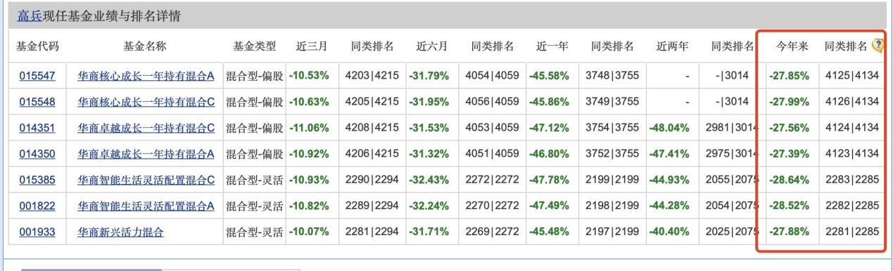 截至5月28日,他管理的华商核心成长一年持有混合、华商卓越成长一年持有混合、华商智能生活灵活配置混合、华商新兴活力混合四只基金的今年以来亏损均超过27%,在同类基金中排名后5%。