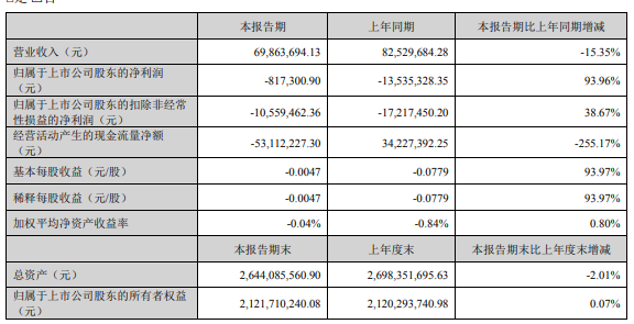 不过,2024年一季度,金溢科技营收下滑15.35%,其净利润和扣非净利润分别亏损了81.73万元和1055.95万元;经营活动产生的现金流量净额-5311.2万元,同比下滑255.17%。
