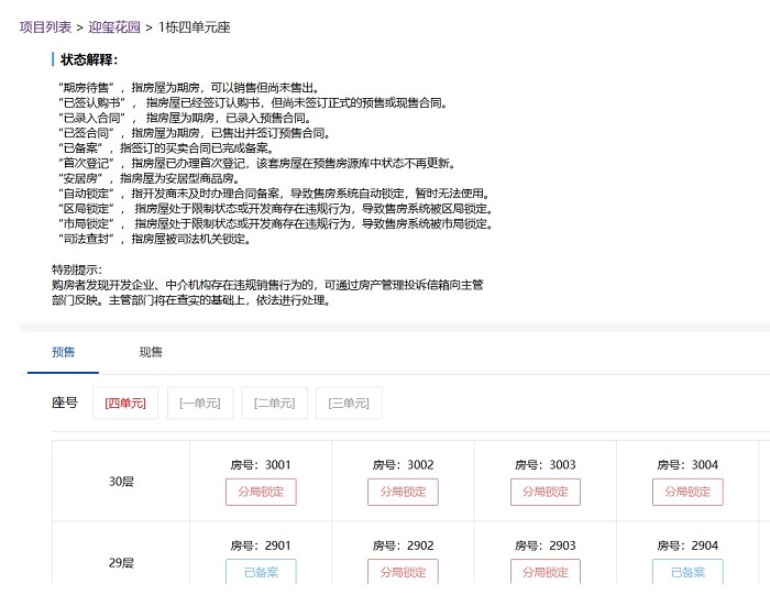 此外,近段时间记者观察到原属于中洲控股旗下位于深圳市龙华区的楼盘—中洲迎玺(项目名:迎玺花园)有大部分未售出房源显示“分局锁定”。据了解,“分局锁定”是指房屋处于限制状态或开发商存在违规行为,导致售房系统被锁定。