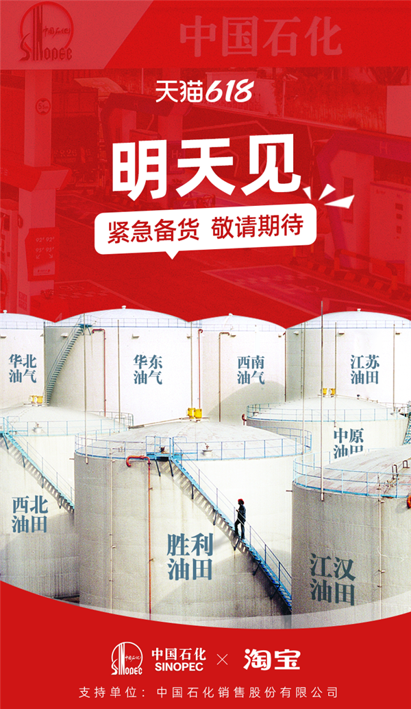 5月29日消息,日前,淘宝和中国石化的官方微博发布倒计时海报,官宣中国石化将加入天猫618。