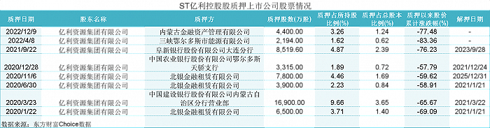 以ST亿利为利,截至2023年末,控股股东亿利资源集团有限公司已经将持有的100%股份全部质押出去了。质押方多来自于内蒙古,比如质押给内蒙古金融资产管理有限公司4400万股,质押给中国建设银行股份有限公司内蒙古自治区分行营业部1.7亿股。