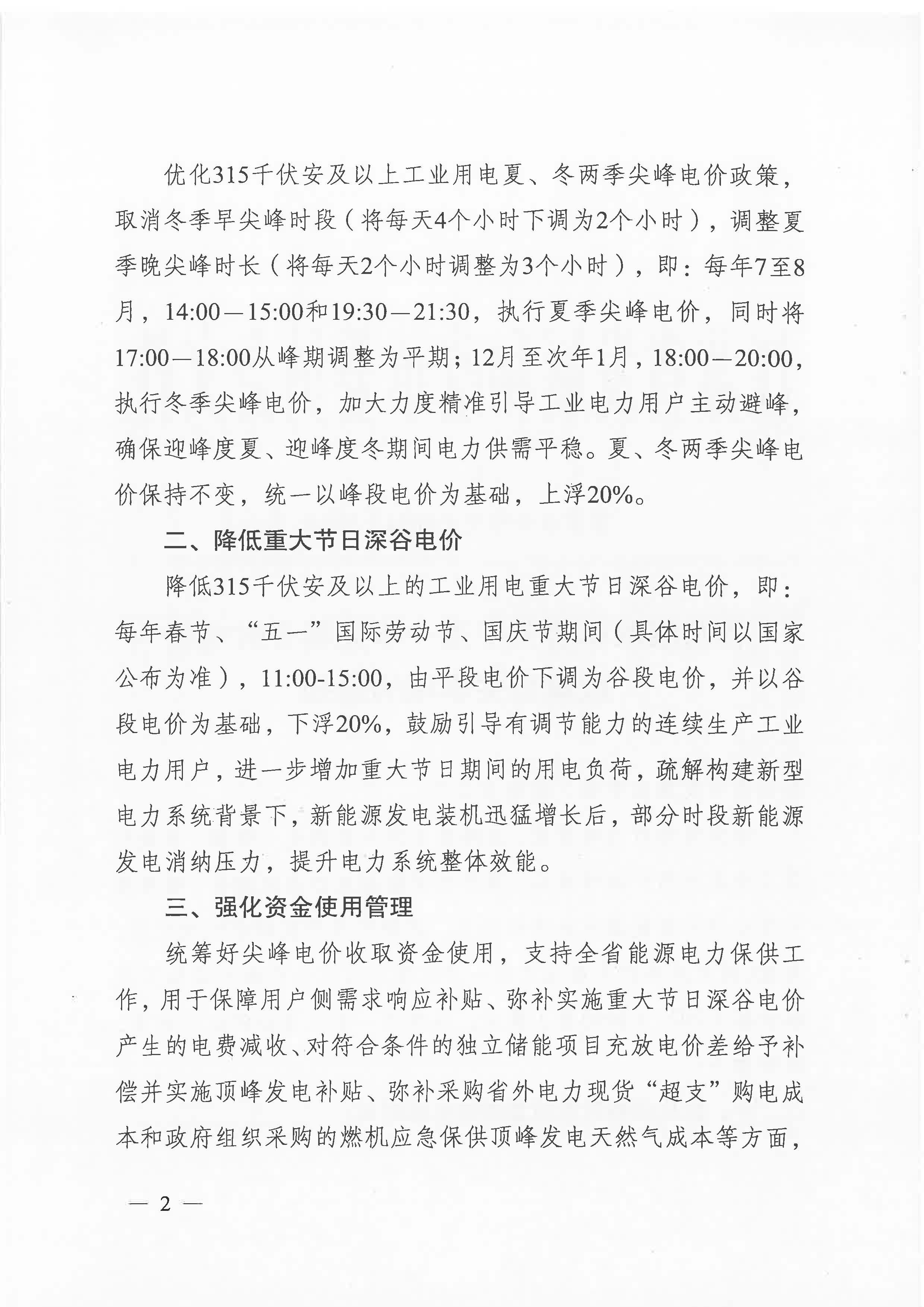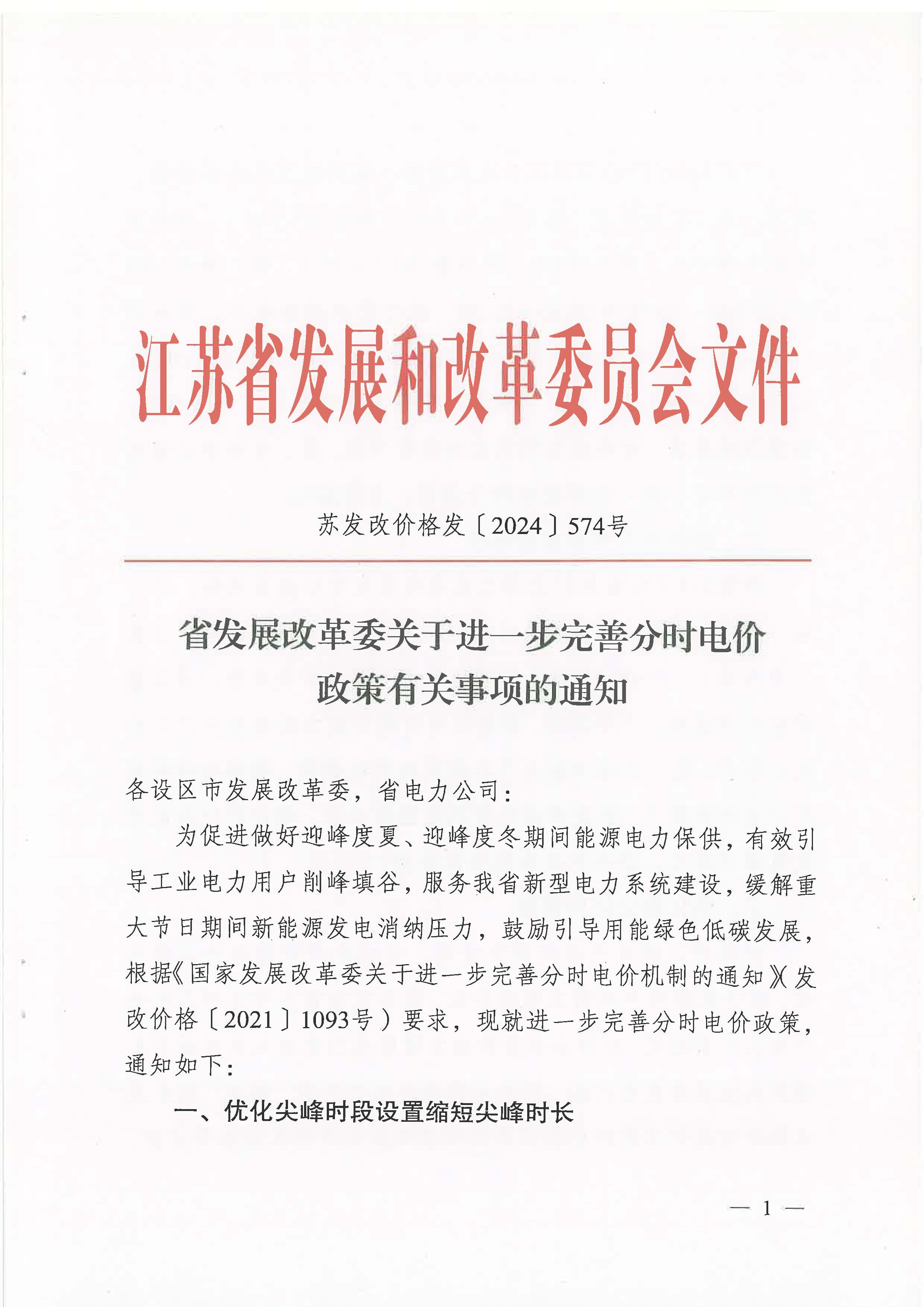 5月28日,为促进做好迎峰度夏、迎峰度冬期间能源电力保供,有效引导工业电力用户削峰填谷,服务新型电力系统建设,缓解重大节日期间新能源发电消纳压力,鼓励引导用能绿色低碳发展,江苏省发展和改革委员会27日发布《省发展改革委关于进一步完善分时电价政策有关事项的通知》。