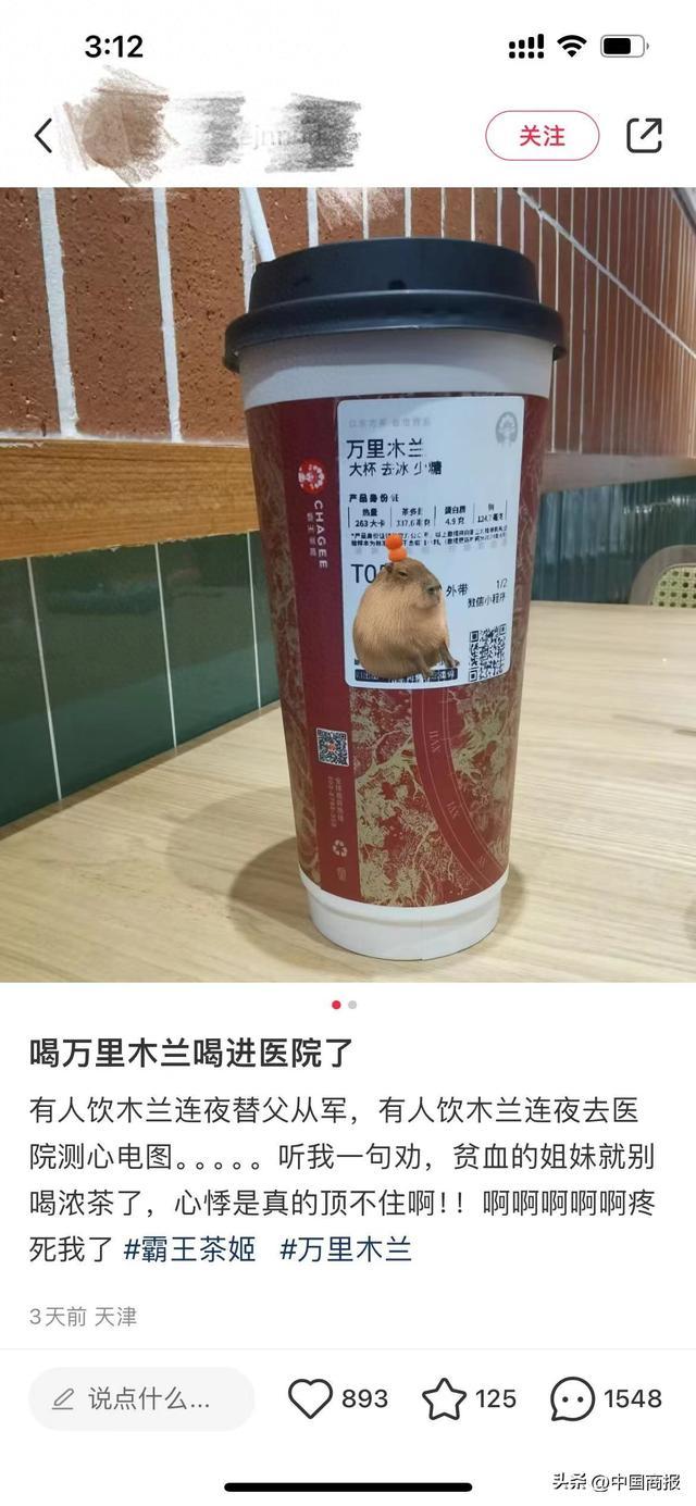 在小红书平台上,多篇笔记内容显示,有消费者称“喝了霸王茶姬奶茶后出现心悸”。有网友表示:“喝完霸王茶姬的万里木兰后,心悸伴随着疼痛,吓得连夜去医院测心电图。因为本身体质不好加贫血,喝完浓茶反应比较强烈。”
