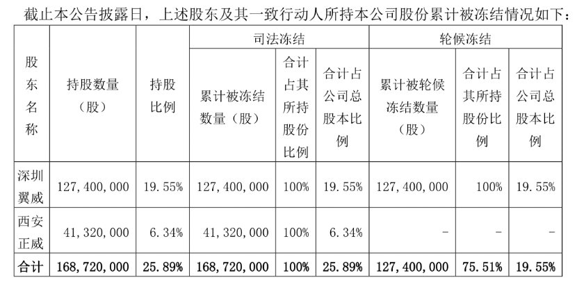 冻结、股权拍卖等信息延后披露背后,或隐藏着正威新材的控制权之忧。上述被冻结、司法拍卖的股份均属于控股股东深圳翼威,对正威新材实控权起到关键作用。