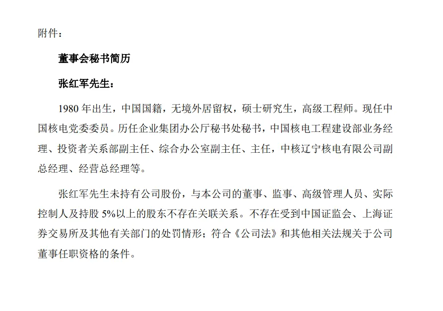 5月25日,中国核电发布公告称,公司近日收到董事会秘书罗小未先生辞呈,罗小未先生因工作调整辞去董事会秘书职务。