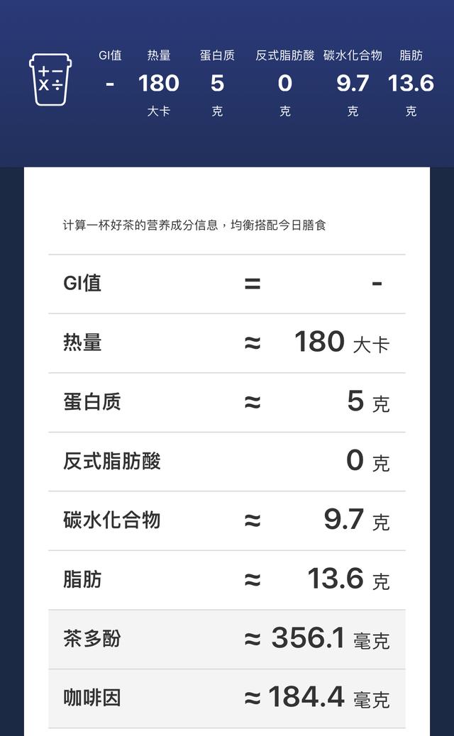 大杯“万里木兰”营养成分;来源:霸王茶姬