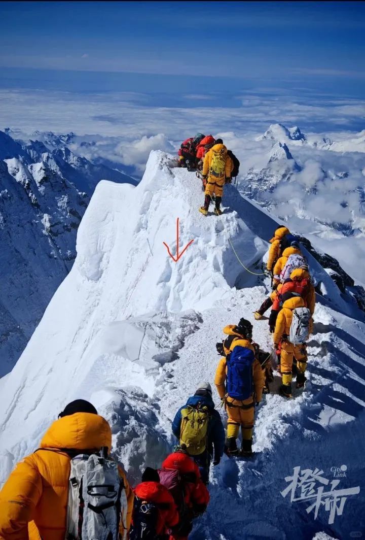 他回忆了这次经历:“5月21日6:30左右,陆续有登顶珠峰的登山者下撤,和正在冲顶登山者在希拉里台阶相遇,渐渐出现‘堵车’的情况,我开始记录。”