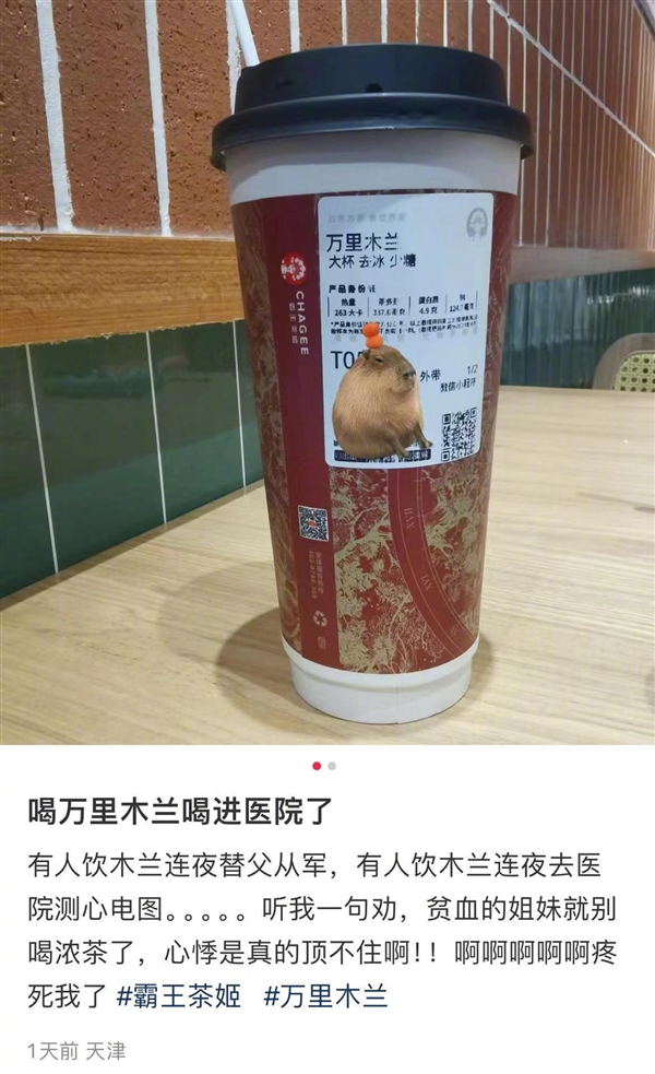 5月22日消息,据国内多家媒体报道,在社交平台上,有多位网友称,自己喝了霸王茶姬新品“万里木兰”奶茶后出现心慌心悸等不适症状。