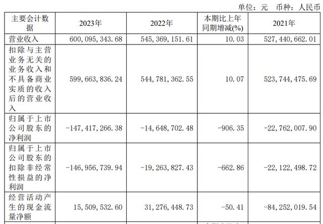 业绩方面,2023年度ST南卫实现营业收入6亿元,与同比增加10.03%;归属于母公司股东的净利润为-1.47亿元。