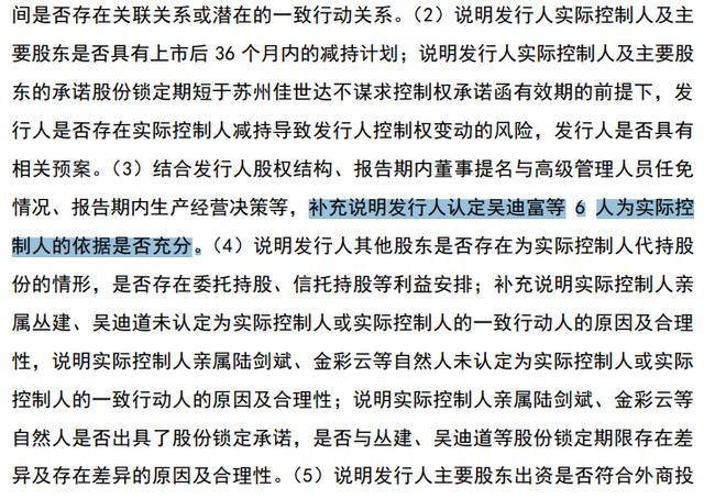 对此,北交所要求结合宇迪光学股权结构、报告期内董事提名与高级管理人员任免情况、报告期内生产经营决策等,补充说明宇迪光学认定吴迪富等6人为实际控制人的依据是否充分。