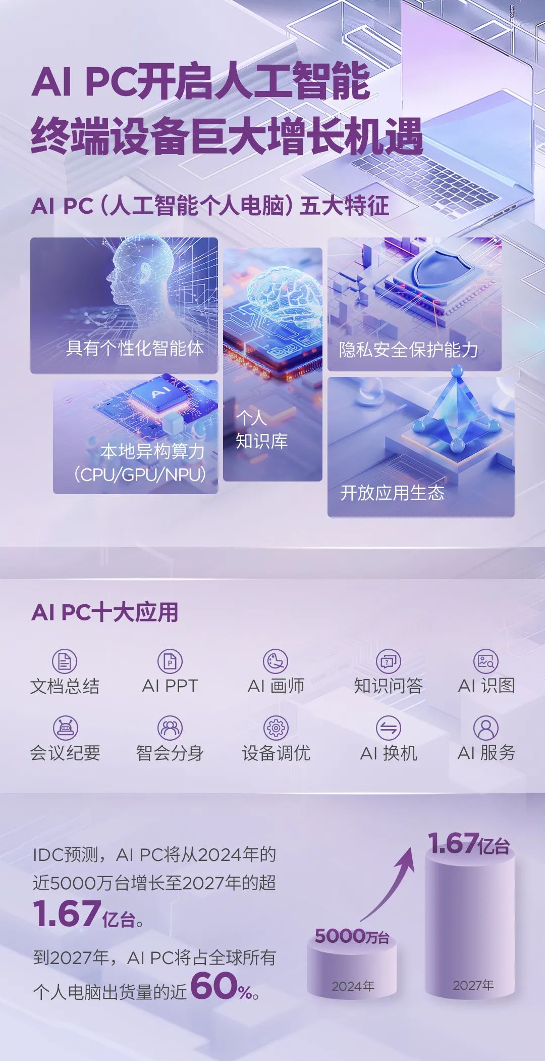 在第四财季,全球PC市场持续回暖的信号得到进一步印证。联想集团核心主业个人电脑业务继续扩大领先优势:全球市场份额22.9%,增速高于市场近6个百分点,并在全球五大区域市场中的四个位居第一。而在生成式AI掀起的全球生产力再革命的大浪中,联想集团确立了在AI PC这一新物种领域的领跑者地位:率先定义了真正AI PC的五大特征,相关产品亦于近期领先上市。