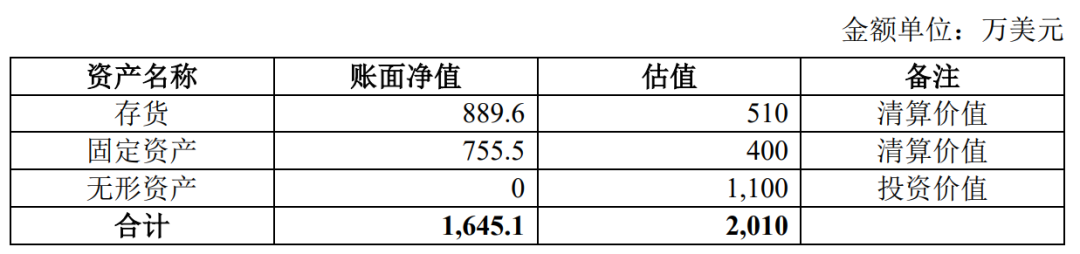 但在估值基准日2024年2月29日,在假设和限定条件下,经估值公司选定拟购买的破产主体名下的无形资产投资价值为1100万美元。