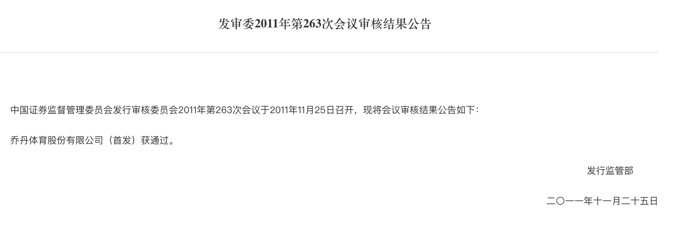 界面新闻注意到,早在2011年乔丹体育就申请上市,根据证监会发审委2011年第263次会议结果看,当时乔丹体育也成果过会,过会的时间是2011年11月25日,距今12年有余。但此后未有新的进展。这一次上交所受理的时间则是2023年3月4日,此时“乔丹体育”已变成“中乔体育”,2023年7月进入问询环节,但问询回复并未有披露,直到2024年5月份IPO终止。