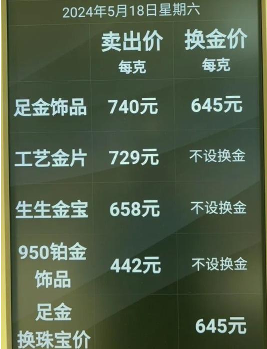 “其实我们前天就预计金价会突破,果然还是来了,后面恐怕还是会继续涨。”上文资深店长指着店里739元/克的售价对记者说,金价高得让人发愁啊,销售做不上去。