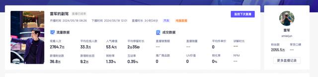雷军上一次直播是在4月,开播仅1分钟观看人数超过10万,开播两分钟观看量即破千万。