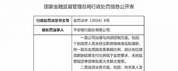 平安银行回应称,“我行于2019年接受原中国银保监会检查,近日收到了国家金融监管总局的行政处罚决定书。我行高度重视,诚恳接受处罚。5年来,我行认真落实监管检查各项要求,整改工作已全部完成。我行将以此为契机,举一反三,建立常态化合规检视与排查机制,强化合规文化理念和制度机制建设。”