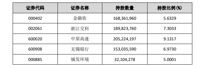 蓝鲸新闻记者梳理,目前,长城人寿持股比例在5%以上的上市公司共6家,分别是中原高速(9.1317%)、浙江交科(7.3033%)、无锡银行(6.9730%)、金融街(000402.SZ,5.6329%)、江南水务(5.0001%)、城发环境(5.0001%)。除金融街外,其余5家均是最近一年举牌。