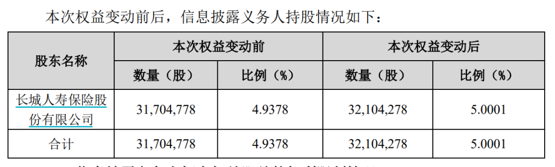 根据江南水务公告,截至该公告披露日,长城人寿通过二级市场增持公司股份为4676.17万股,占公司总股本的5.0001%。江南水务表示,本次权益变动是长城人寿基于保险公司自身配置需求以及该公司配置价值进行的长期投资,资金来源于自有资金。