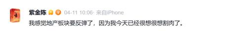当时,紫金陈也表示,感觉地产板块要反弹了,因为他已经很想割肉。