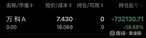 4月11日,割肉万科A。图片显示,紫金陈在万科18元/股的时候分别在两个账户里买入,亏损近60%清仓,合计亏了91.3万元。