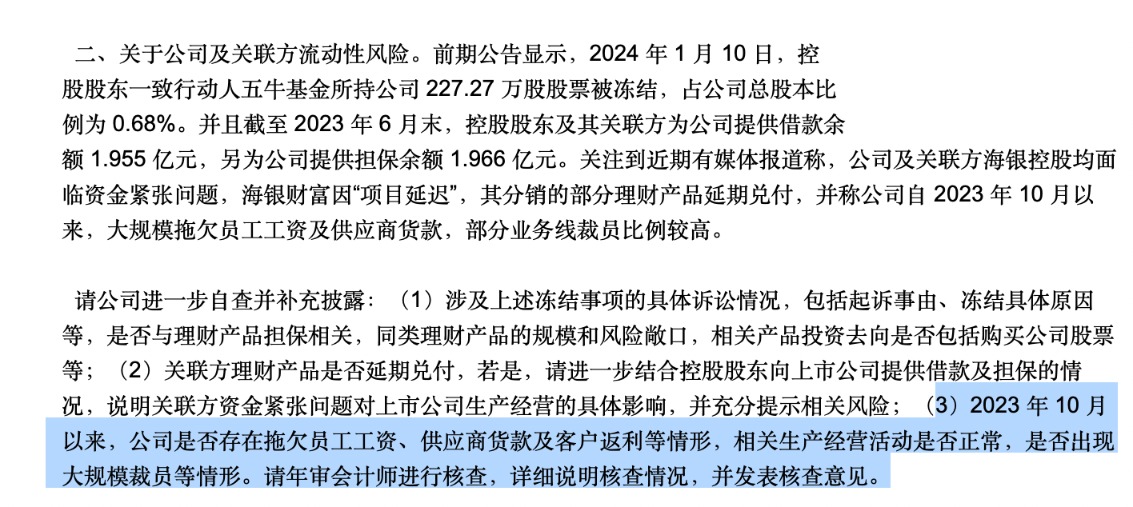 对此,上海贵酒在解释原因时提到,关联方海银财富于2023年12月14日披露公告,海银财富分销的部分产品存在赎回问题。受关联方海银财富事件影响,公司因集中归还控股股东借款导致出现暂时流动性压力,对经销商的返利和市场费用未能及时兑付。正值春节前酒类销售备货旺季,对公司销售带来一定影响。