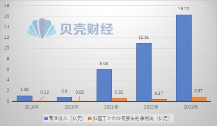 根据上海贵酒2019年至2023年年报可知,2020年起,公司的营业收入逐年增长,并在2023年突破16亿元;归属于上市公司股东的净利润在2019年至2023年期间始终为正数。