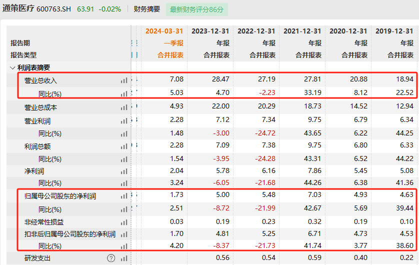 业绩方面,通策医疗2023年营业收入约28.47亿元,同比增加4.7%;归属于上市公司股东的净利润约5亿元,同比减少8.72%。2024年第一季度营收约7.08亿元,同比增加5.03%;归属于上市公司股东的净利润约1.73亿元,同比增加2.51%。