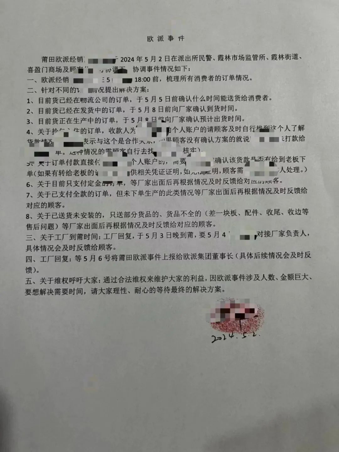 新经销商的落定也意味着莆田欧派经销商“爆雷”风波进入了新阶段,但这并不代表问题彻底解决,尤其是对于拎包入住和整装家居的客户而言。