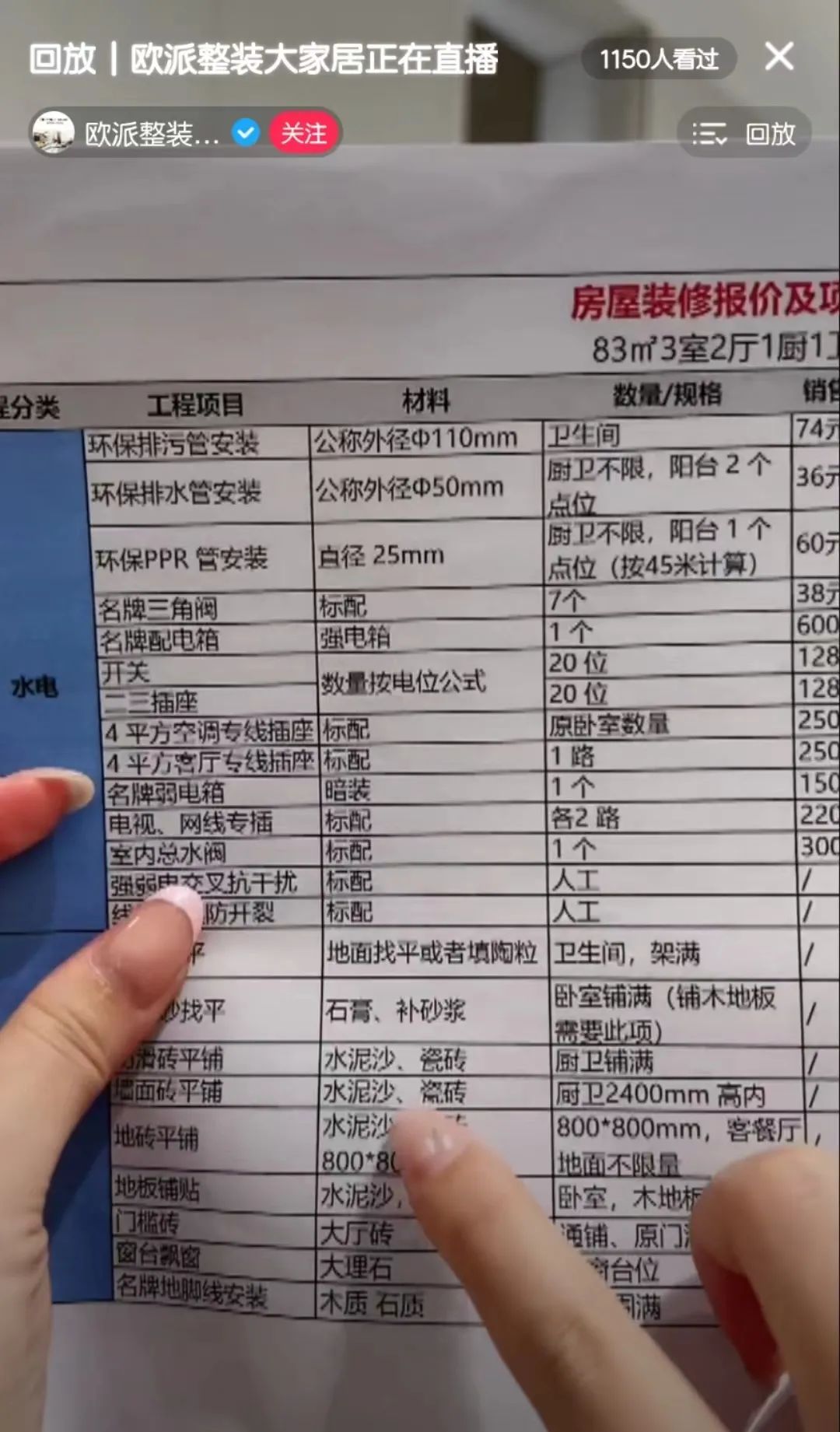 陆华是通过抖音直播知道欧派整装家居的。2023年9月,他在刷抖音时看到一个ID为“欧派整装大家居”的直播,点进去后留下了自己的手机号码,没多久就有欧派电商部的人联系陆华,告诉他当下有优惠活动,并介绍了相关业务,而后他被分流给了经销商黄某。