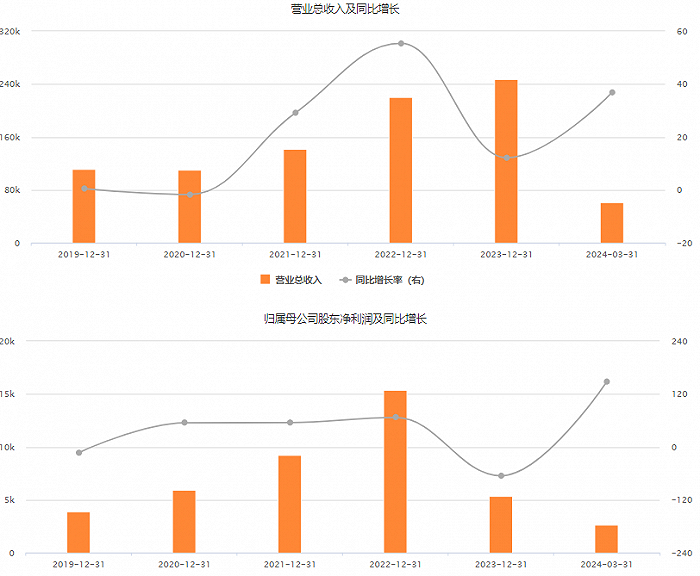 财务数据显示,雅创电子于2022年末、2023年末和2024年3月末的总资产分别为21.33亿元、26.81亿元和27.38亿元,归母净资产分别为9.82亿元、10.88亿元和11.07亿元。公司2022年、2023年和2024年1-3月分别实现营收22.03亿元、24.7亿元和6.13亿元,实现归母净利润1.54亿元、5326.25万元和2647.52万元。2023年,该公司盈利额同比下滑65.45%。