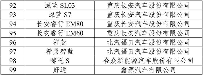 99款车型入选目录