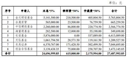 8.创金合信基金——本金6000万元、利息278.8767万元;