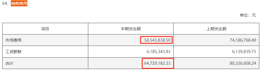 市场费用占当期营收67.59%