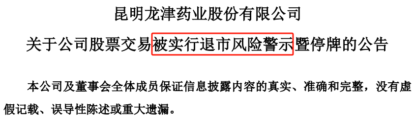 需要注意的是,龙津药业年报发布后,财务指标触及前述规则第9.3.1条第一款第(一)项的规定“最近一个会计年度经审计的净利润为负值且营业收入低于1亿元,或者追溯重述后最近一个会计年度净利润为负值且营业收入低于1亿元”的情形,公司股票已经被实施退市风险警示,即*ST。