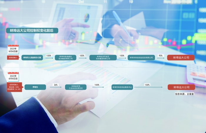 “接盘方”蚌埠市科技创业服务中心,位于蚌埠市禹会区,与此次受理破产重整案的法院同属一个区,注册资本为50万元。上述股权变更之后,蚌埠远大公司就从地方国资控制变成自然人罗路生控制。