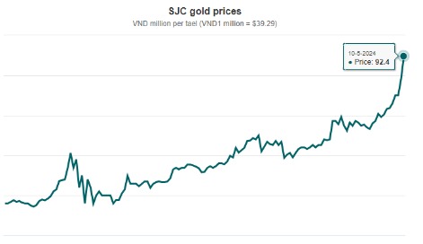 一组价格对比显示,目前越南金价约为每两9240万越南盾,比全球金价高出了近28%。